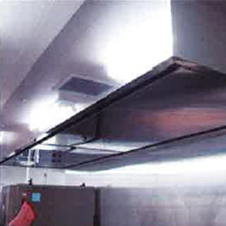 イニシャルコストの低減排気風量の約40%低減により排気ファン、排気ダクト、グリスフィルター、防火ダンパー等の小型化を実現。(※場合によっては排気ファンの屋内設置可能。)