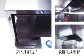・排気ファン小型化による音源自体の低減効果。・ハイ・フードの遮蔽効果によりフード内部の汚れが目立ちにくい。
